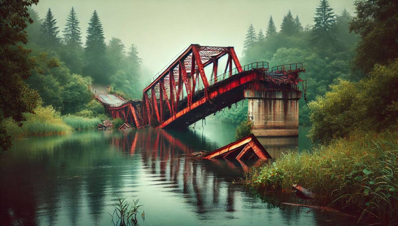 - Что стало с мостом? Мост был частично разрушен весенним паводком и нуждался в ремонте.