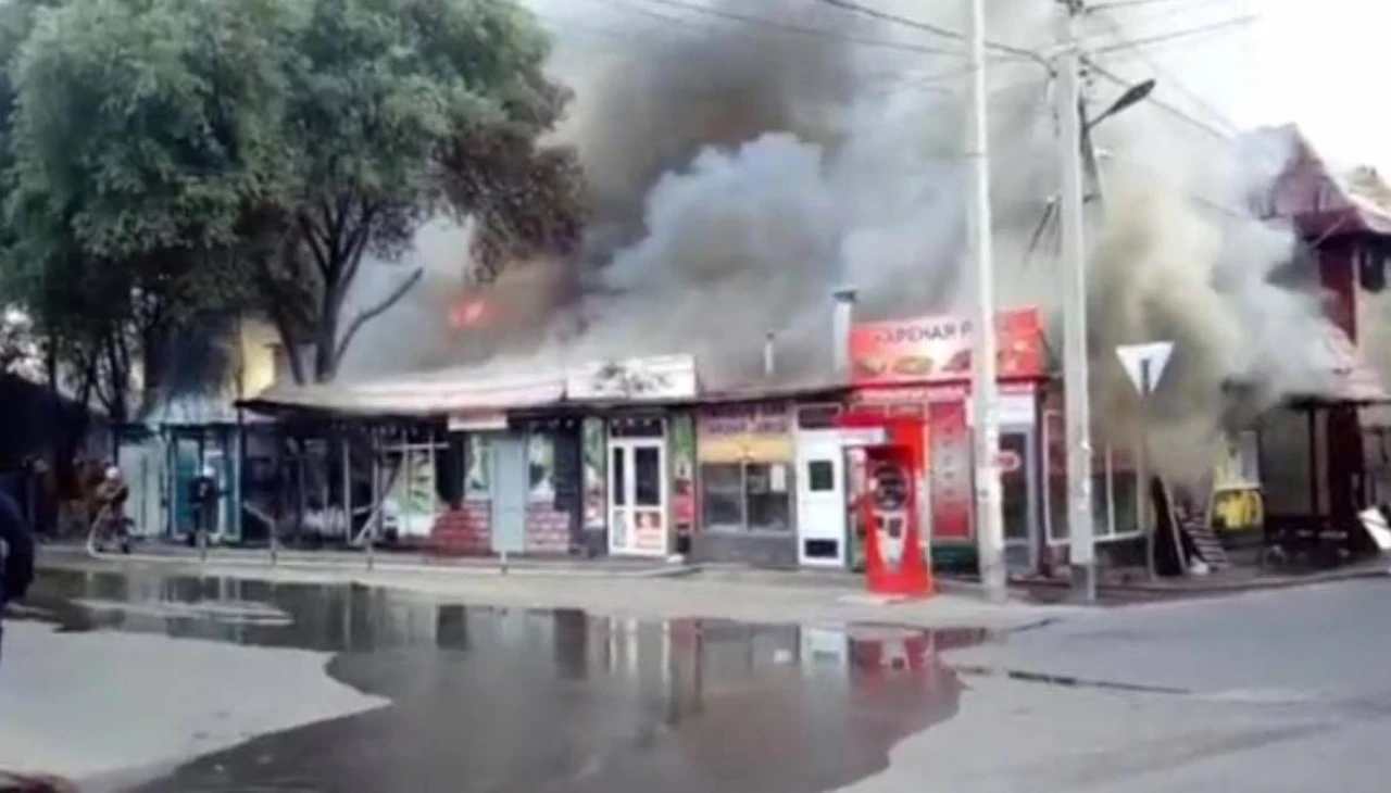 Министерство по чрезвычайным ситуациям опубликовало в Telegram видеозапись с места происшествия. На кадрах видно, как языки пламени охватывают здание гостиницы, а густой черный дым окутывает окрестности.