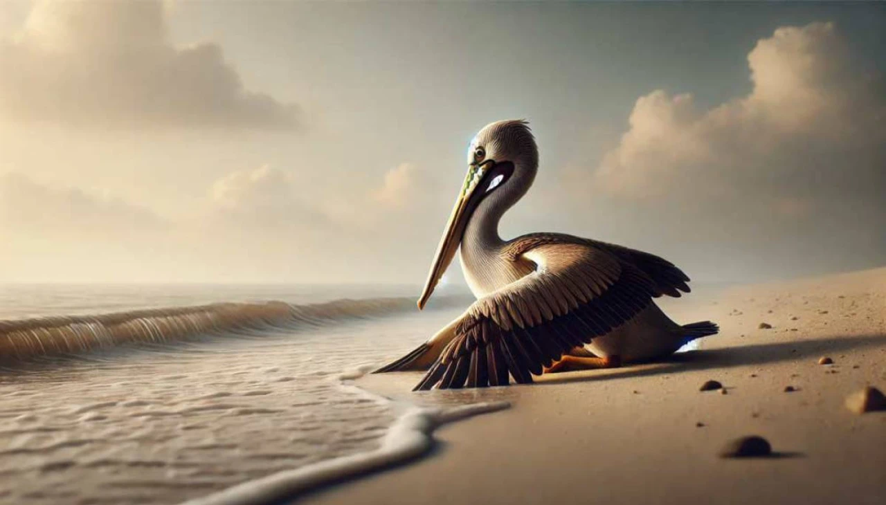2. Почему пеликан остался на зимовку? — Он еще слишком молод, его перья не развиты для перелетов.