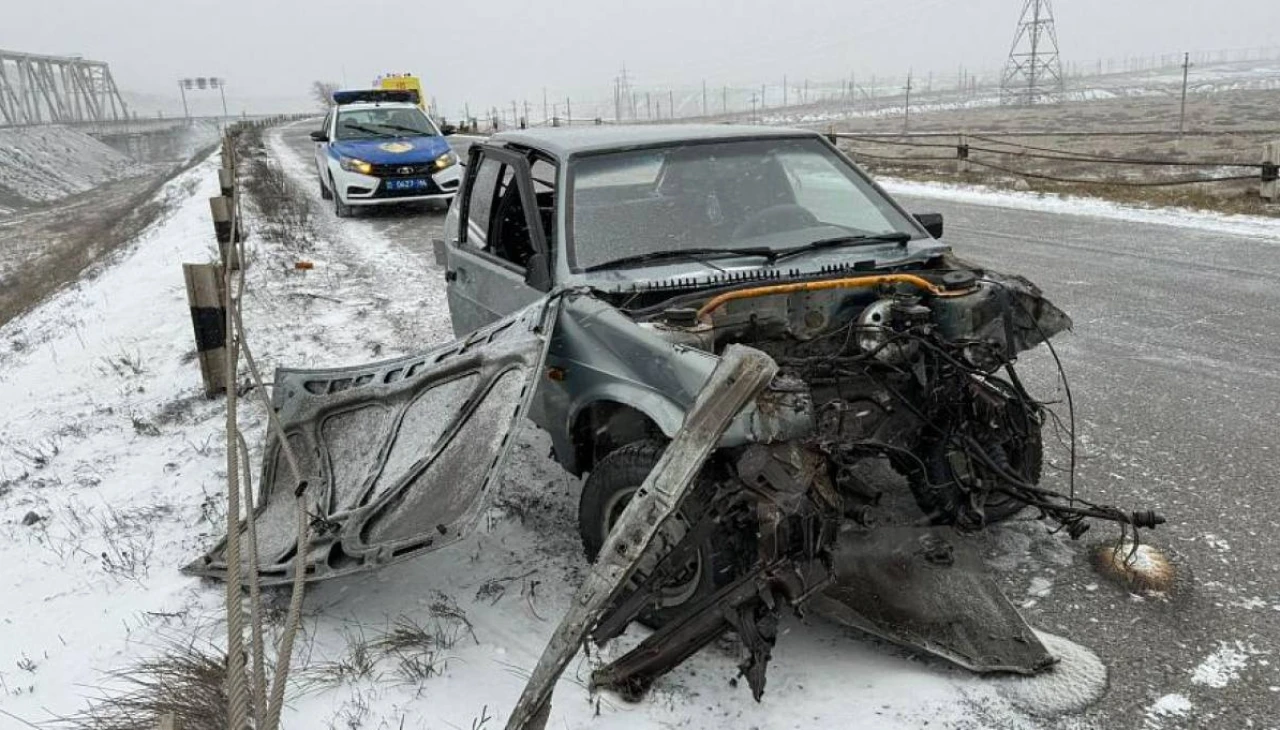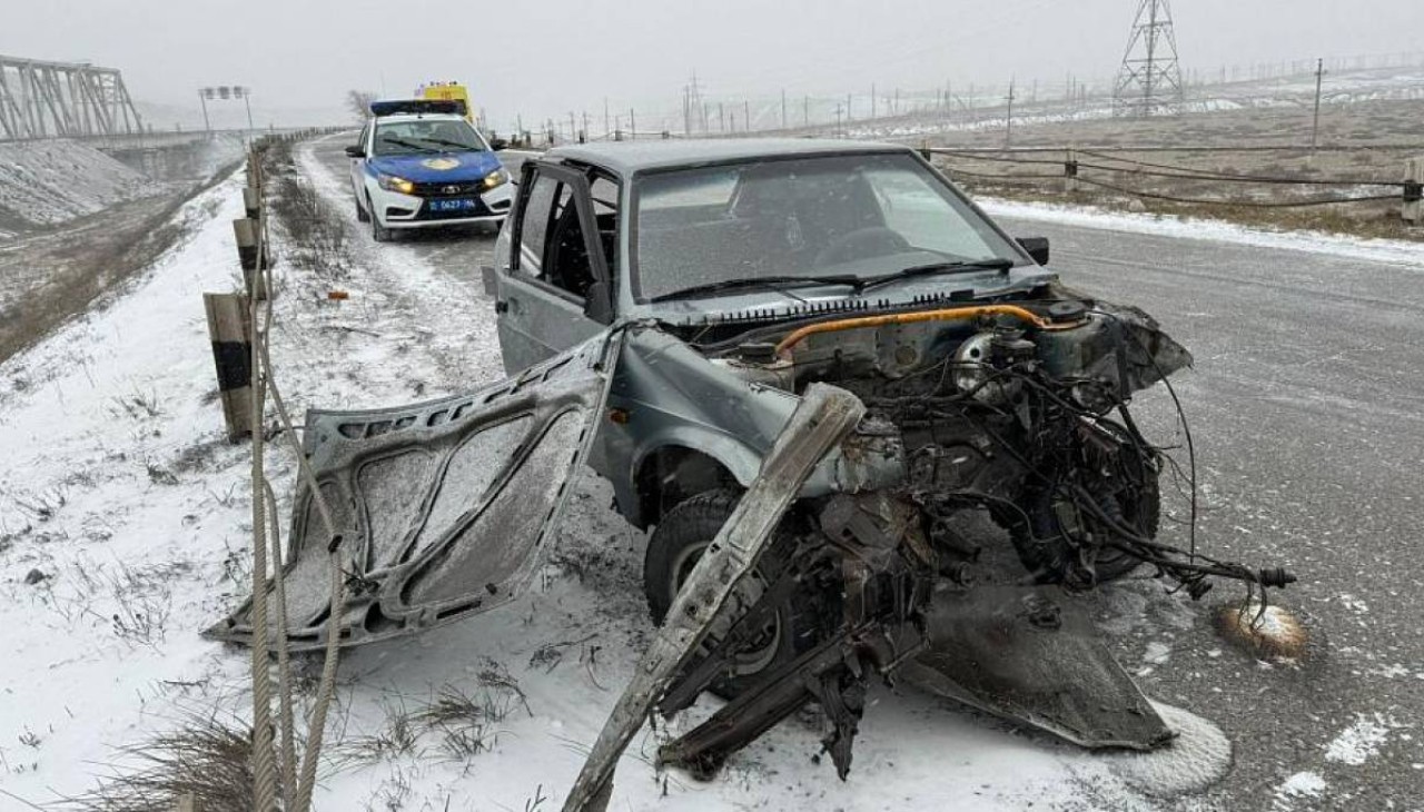 Корреспондент сообщает о трагическом случае на автодороге в Павлодарской области. Водитель легкового автомобиля ВАЗ-21093 не смог удержать машину на дороге и врезался в металлическую опору.