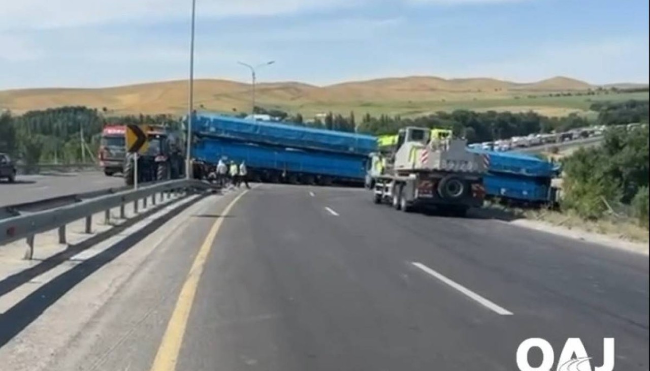 Как сообщает нацкомпания «КазАвтоЖол», авария произошла 4 июня на 653-м километре платной автодороги Тараз – Шымкент вблизи села Келтемашат Тюлькубасского района. В ДТП попал крупногабаритный грузовик марки Shacman длиной 43,8 метра, шириной и высотой 5,2 метра, массой 124,8 тонны.