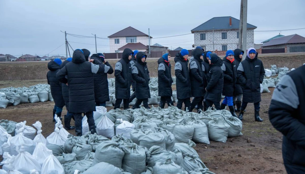 9 апреля 2024 года в 10:00 Молодежное общественное объединение «Дала Қырандары» провело работы по задержке наступающей воды в селе Тайтобе.