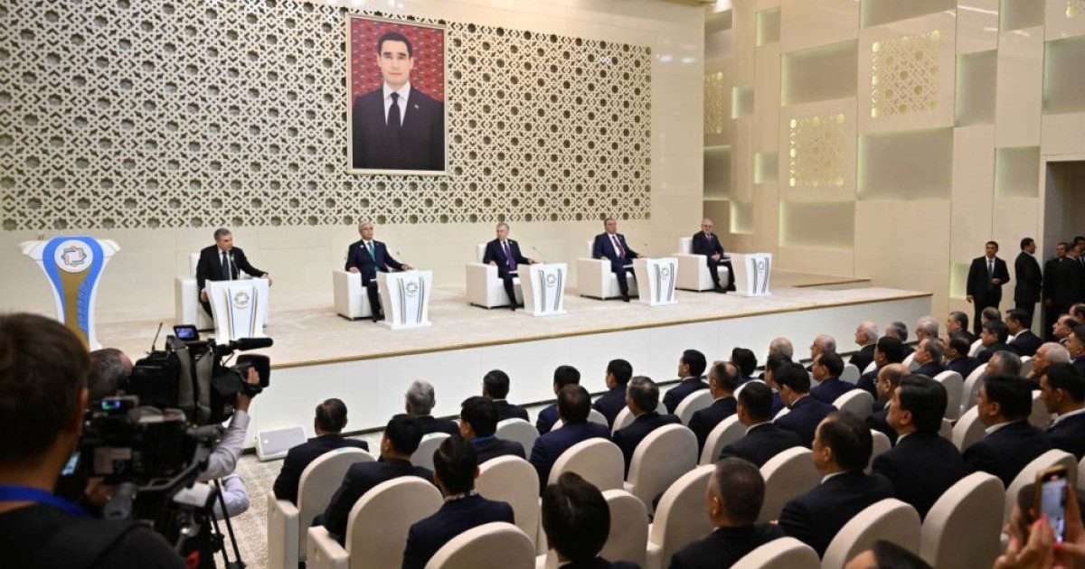 Судя по фото, лидеры собрались в зале с большим портретом действующего президента Туркменистана Сердара Бердымухамедова.