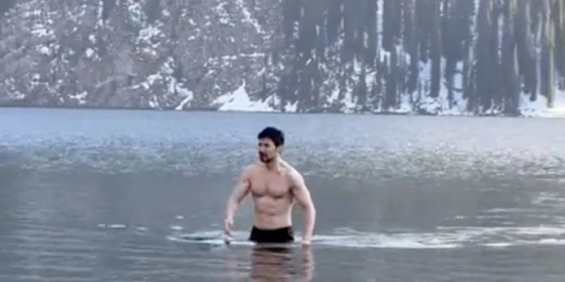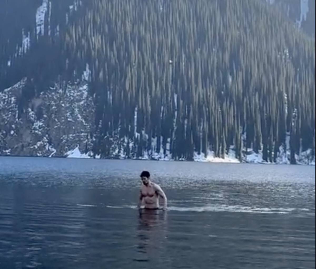 На кадрах видно, как предприниматель спокойно входит в кристально чистую воду.