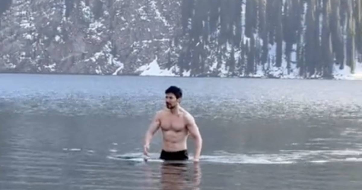На кадрах видно, как предприниматель спокойно входит в кристально чистую воду.