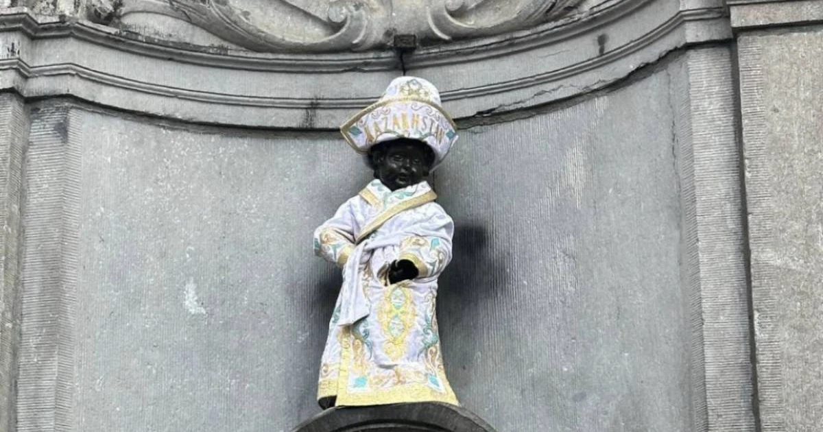 На знаменитую статую Писающего мальчика (Манекен-Пис) в Брюсселе снова надели казахский чапан, передает Arasha.kz.