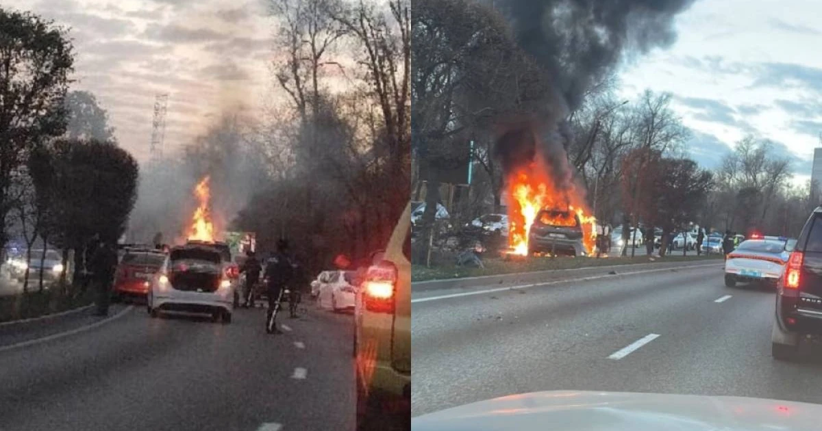 В ведомстве отметили, что после удара автомобиль Toyota загорелся.