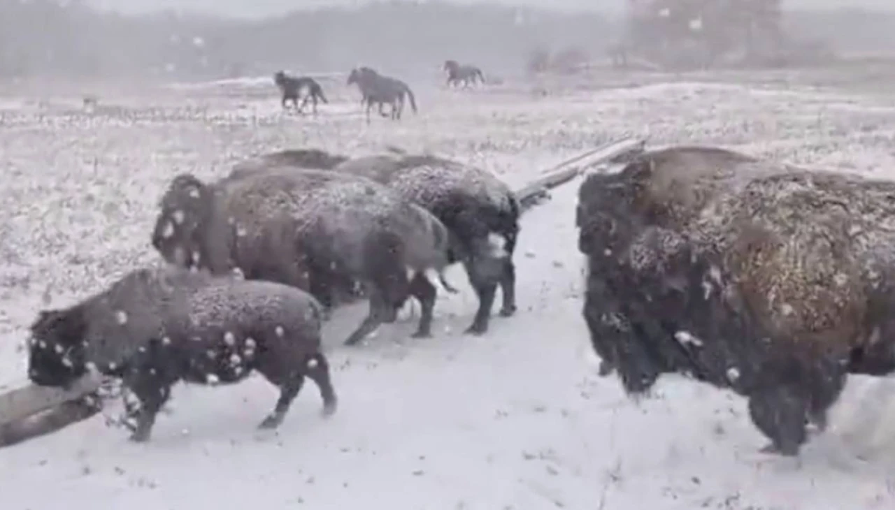 В сети появилось видео с бизонами, бегущими по заснеженной равнине. Редкие кадры быстро привлекли внимание пользователей соцсетей, передает Arasha.kz.