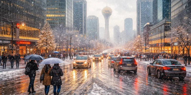 В Актау переменная облачность, дождь со снегом, ветер 9-14, порывы до 15-20 м/с.