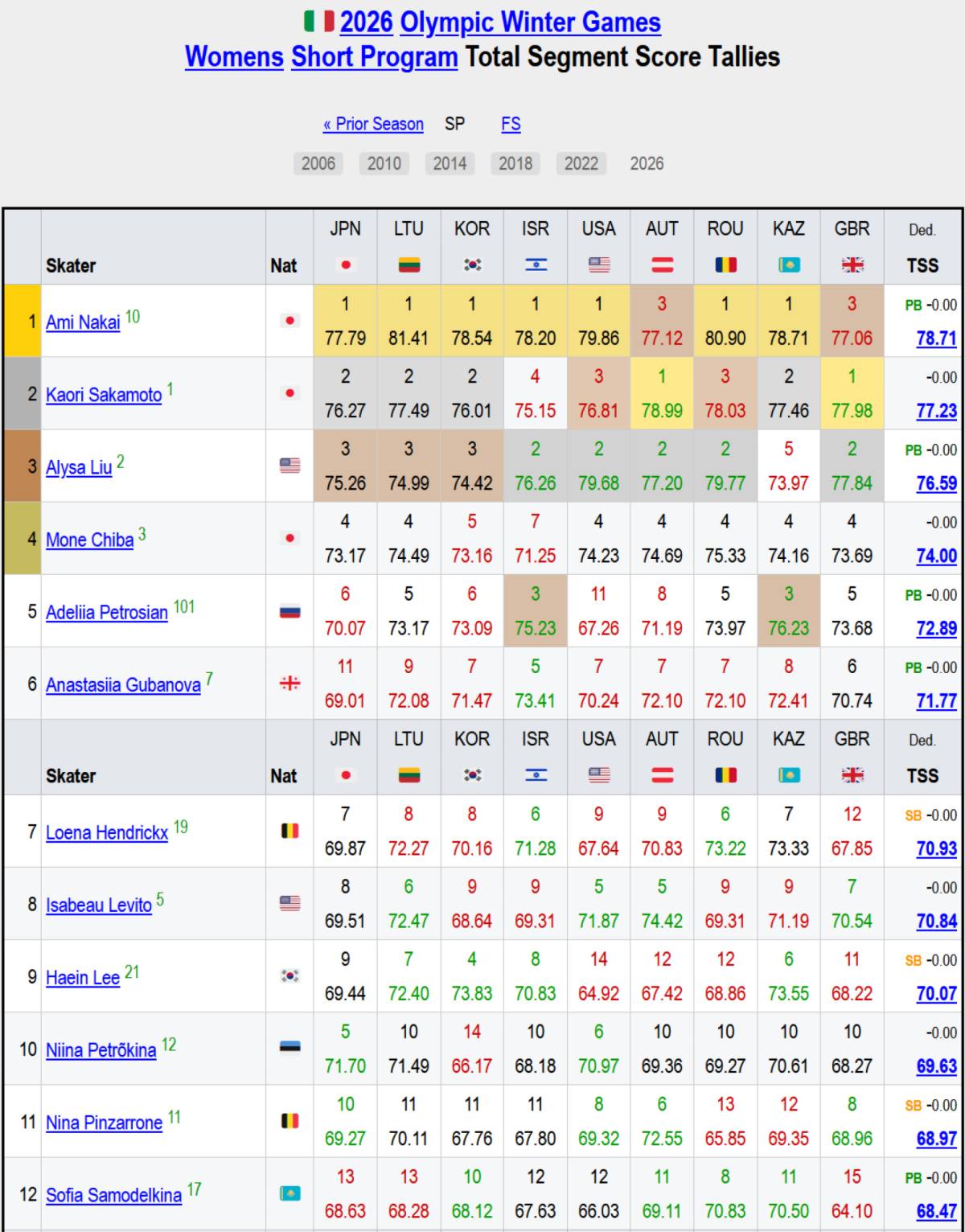 В то же время катание россиянки Аделии Петросян в короткой программе судья из Казахстана оценила в 76,23 балла - выше, чем любой другой арбитр на турнире, а в произвольной и вовсе поставила россиянку на первое место - 147,04 балла, а Алисе Лью из США, которая в итоге стала чемпионкой, выставила на 9 баллов меньше, чем судья с максимальными оценками.