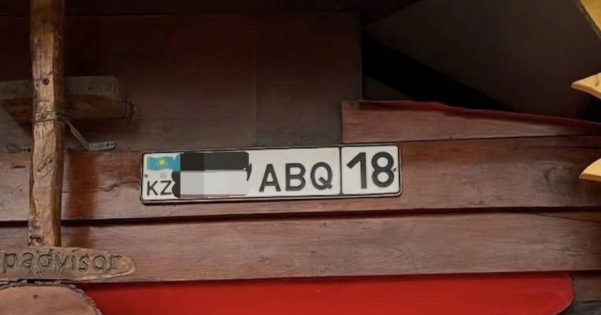 На опубликованном фото видно казахстанский государственный номерной знак, закрепленный на фасаде небольшого магазина.