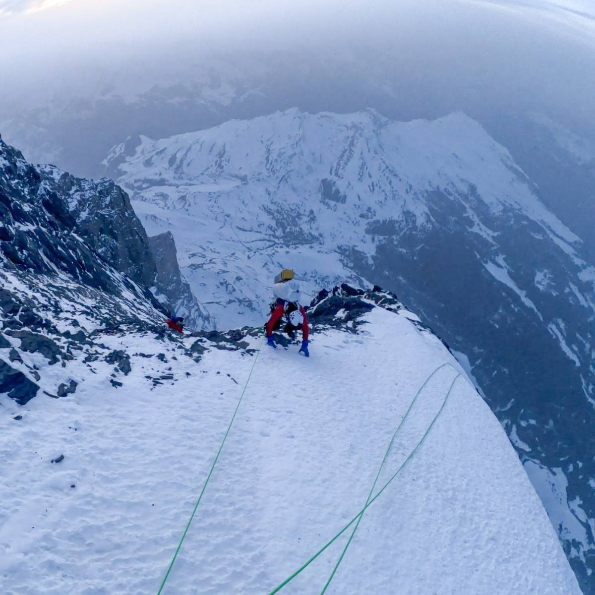 Восхождение заняло два с половиной дня. Команда шла первой в сезоне — без следов предыдущих восходителей, прокладывая путь и очищая скалы от снега. В первый день прошли две трети стены и заночевали на «Бивуаке смерти» — без палатки, в обвязках, пристёгнутыми к точкам страховки. Во второй день преодолели верхнюю, наиболее техничную часть, достигли вершины и начали спуск. На третий день благополучно завершили спуск.