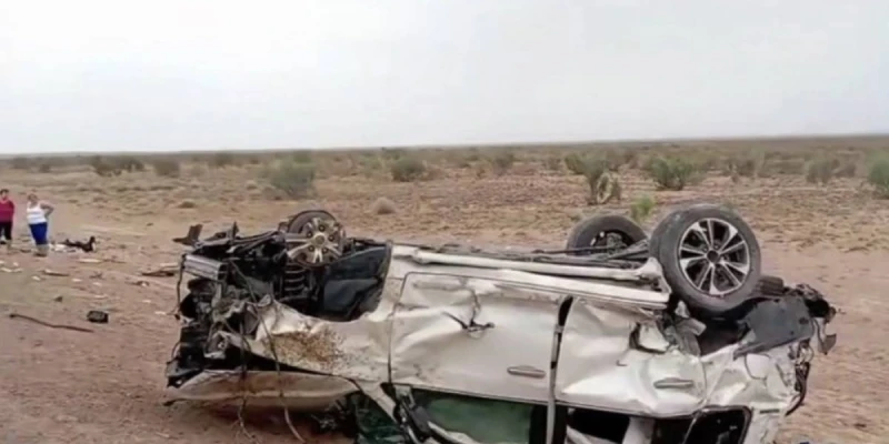 Также полиция Жамбылской области публиковала видео с места аварии. На кадрах был виден перевёрнутый внедорожник с серьёзными повреждениями кузова, вырванным колесом и разбросанные обломки автомобиля.