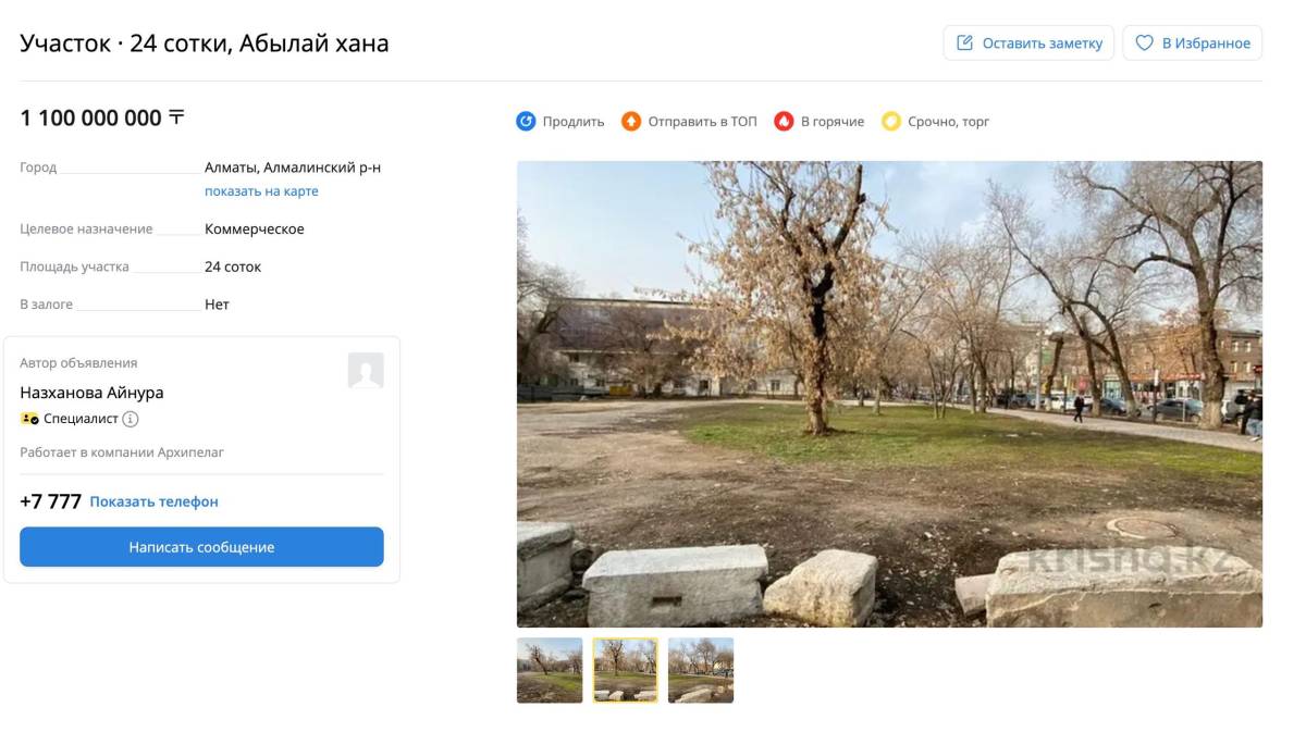 30 марта на сайте объявлений Krisha.kz появился лот про продаже пустыря. В объявлении указано, что территория ровная, с удобным въездом и «идеально» подходит под коммерческие проекты.